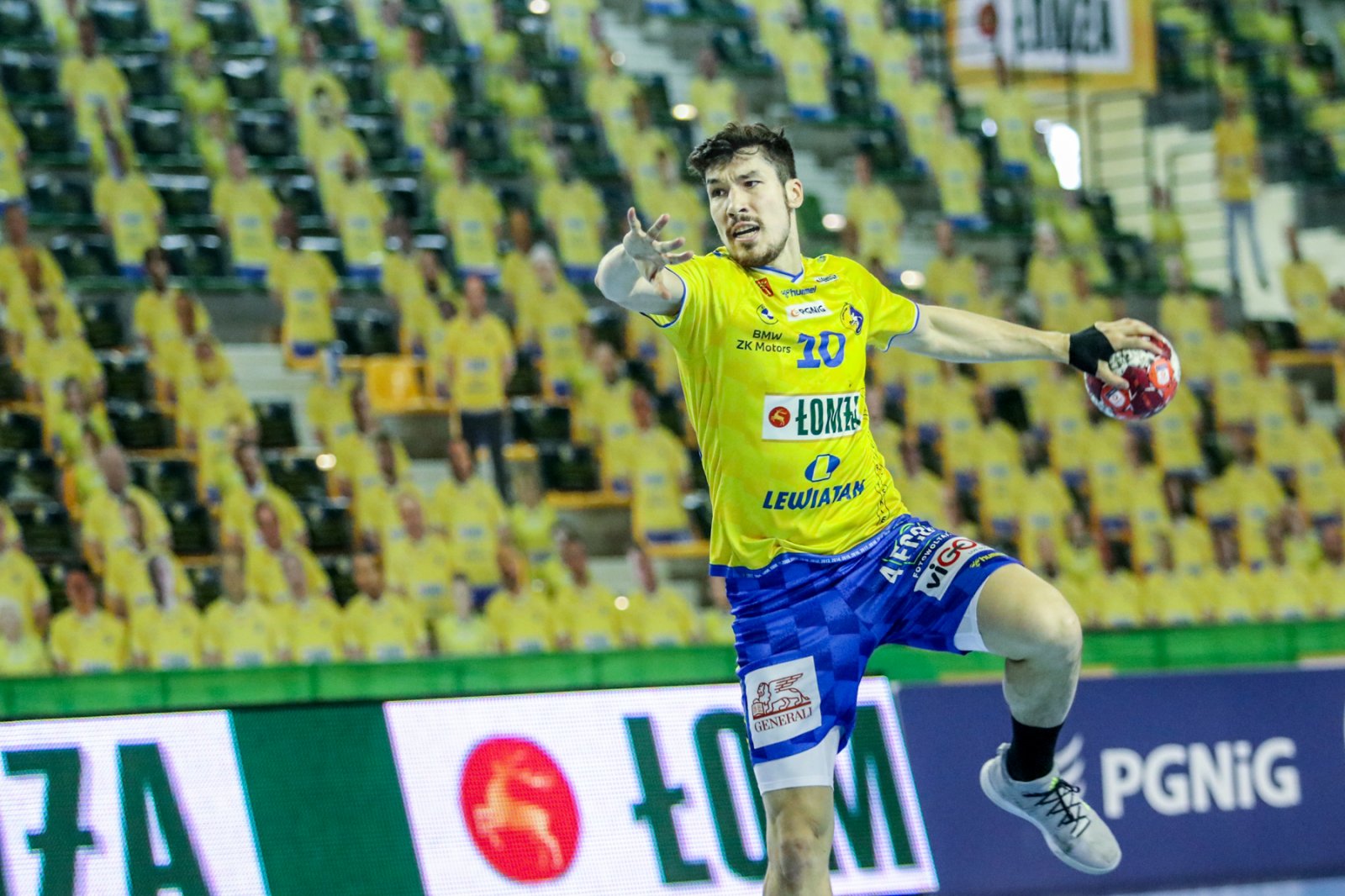 Mocne było nie tylko ustawianie, ale i wejście w mecz. Łomża Vive zaczęła od szybkich czterech bramek, a pierwszą dała sobie rzucić w 4. minucie. Później jednak spotkanie zrobiło się bardziej wyrównane, w 14. minucie kielczanie wygrywali 6:4. Przez niemal większość pierwszej połowy Łomża Vive utrzymywała 2-3 bramki przewagi. Dopiero pod koniec tej części spotkania goście odskoczyli na 17:12.