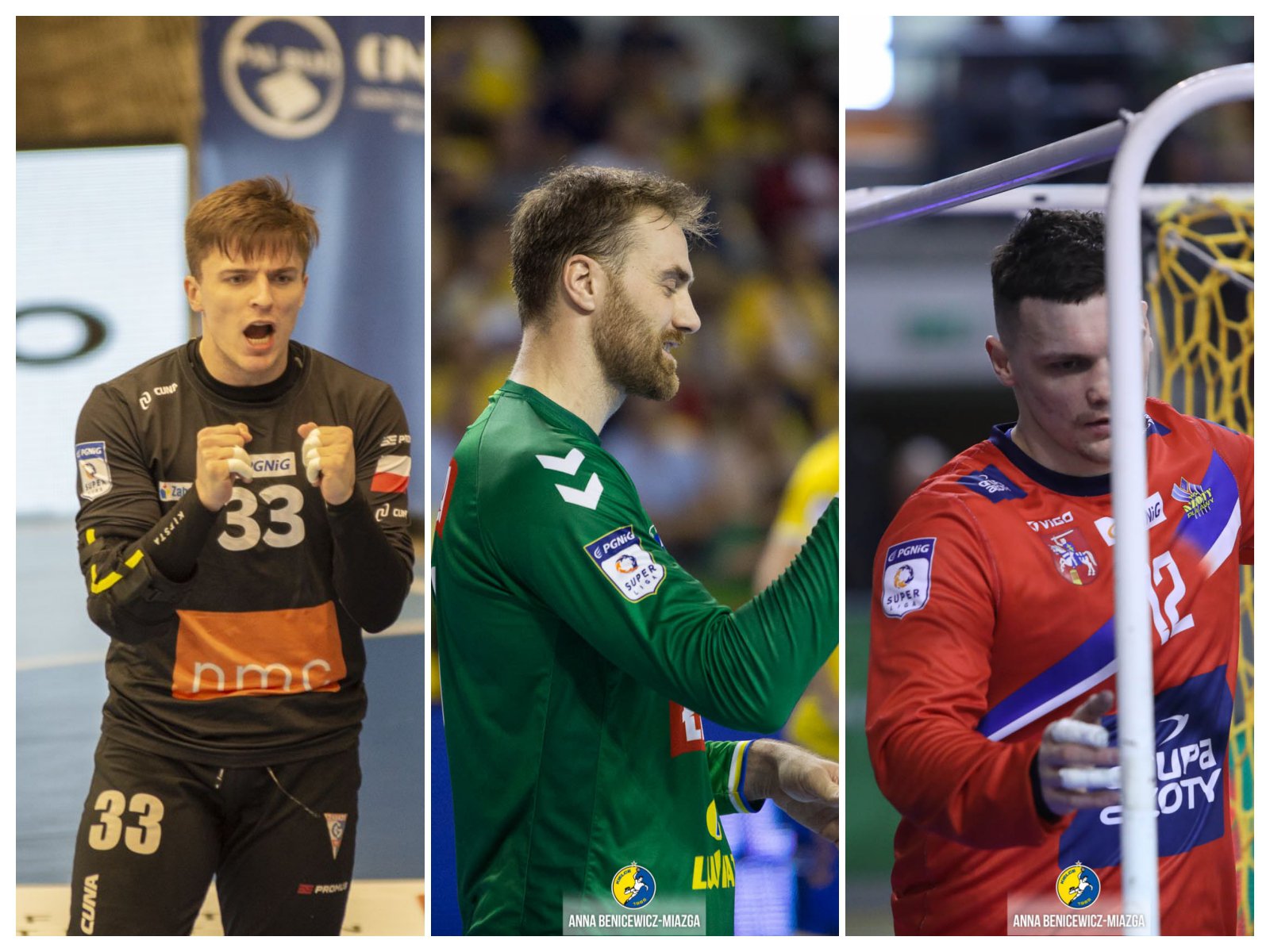Na początek bramkarze. Tu nominowanych jest trzech zawodników - Jakub Skrzyniarz (Górnik Zabrze), Andreas Wolff (Łomża Vive Kielce) oraz Mateusz Zembrzycki (Azoty Puławy). Zembrzycki i Skrzyniarz to reprezentanci Polski. Pierwszy z nich rozegrał 25 meczów, w których obronił aż 194 rzuty, co dało mu 34.95 udanych parad. Zembrzycki jest trzecim zawodnikiem pod względem liczby obron oraz trzecim z najlepszą średnią (jednak pierwszy Martin Galia rozegrał tylko pieć spotkań). Drugi pod względem skuteczności jest Andreas Wolff, który zatrzymał ponad 35 procent rzutów na swoją bramkę (w sumie 154 interwencje). Z kolei Jakub Skrzyniarz w całym sezonie odbił 239 rzutów (najwięcej w całej lidze), co dało mu 31.82 procent skuteczności (statystyki pochodzą ze strony pgnig-superliga.pl).