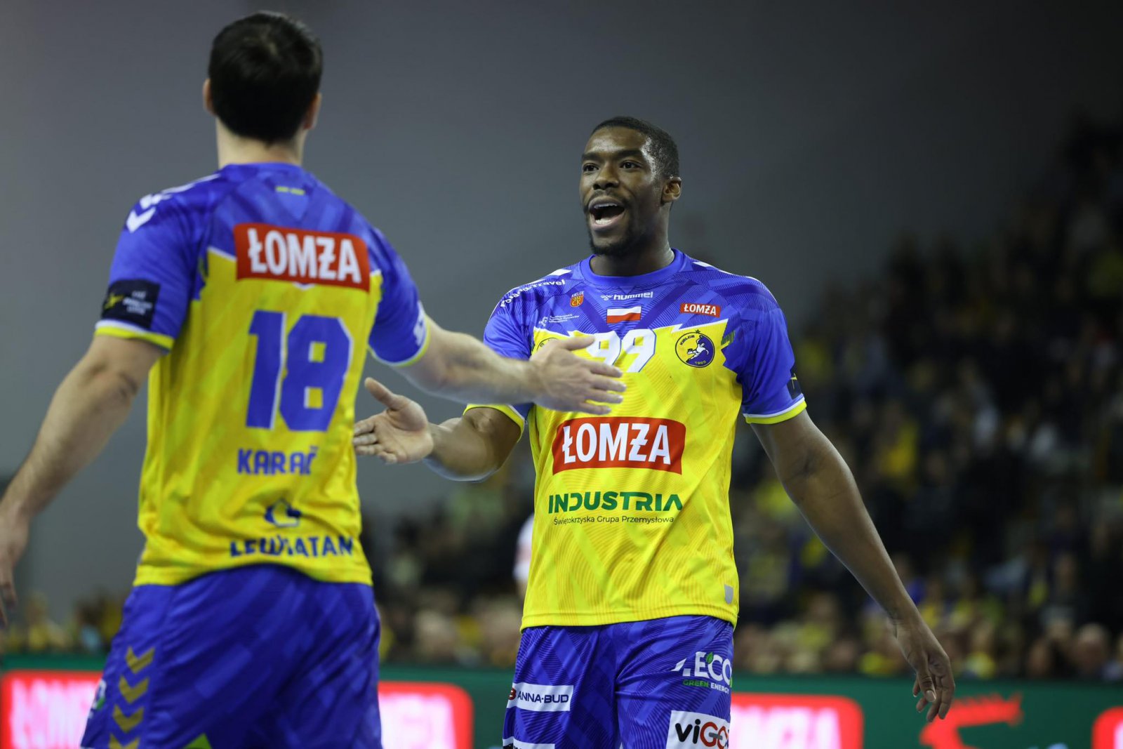 Osłabieni, bo bez Szymona Sićko, Haukura Thrastarsona, Benoita Kounkouda, Cezarego Surgiela oraz Damiana Domagały przystąpiła do tego potkania drużyna Łomży Industrii. W ostatnich dniach z kieleckiego klubu napływały niepokojące wieści w sprawie Sićki, który w meczu w Płocku przeciwko Orlen Wiśle po brutalnym faulu Leona Sunsji upadł bokiem głowy na parkiet. Rozgrywający ostatnie dni spędził w szpitalu, z którego już wyszedł i pojawił się w Hali Legionów na starciu z Celje.