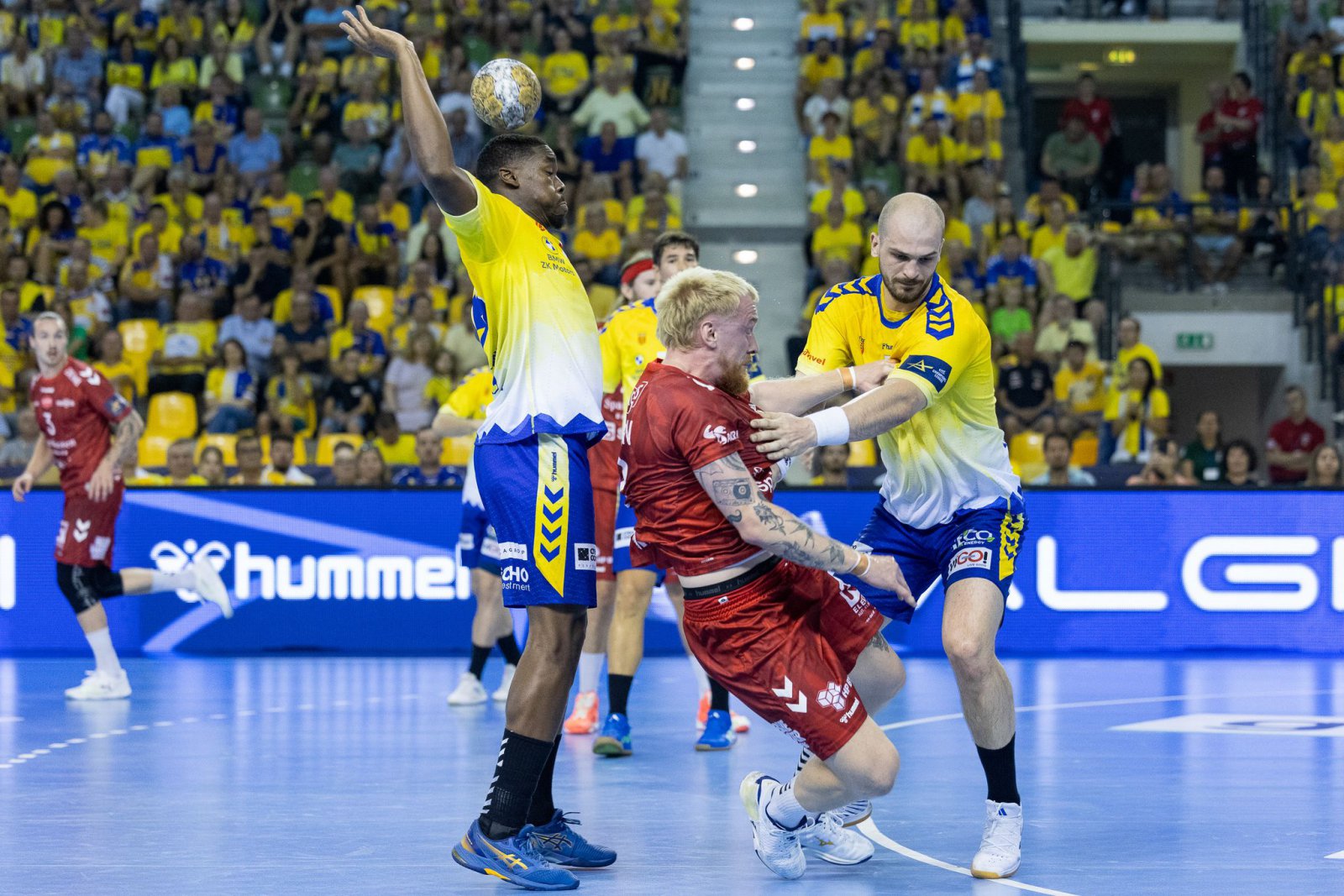 Industria zaczęła drugą połowę, ale nieskutecznie rzucił Szymon Sićko, odpowiedział Mads Hoxer Hangaard i goście mieli cztery bramki przewagi. Jednak kielczanie wzięli się szybko za odrabianie strat, w 34. minucie przy rzucie uderzony w twarz został Artsiom Karaliok i potrzebna była wideoweryfikacja. Ostatecznie czerwoną kartkę otrzymał Hoxer Hangaard, który w tej chwili miał pięć bramek na swoim koncie.