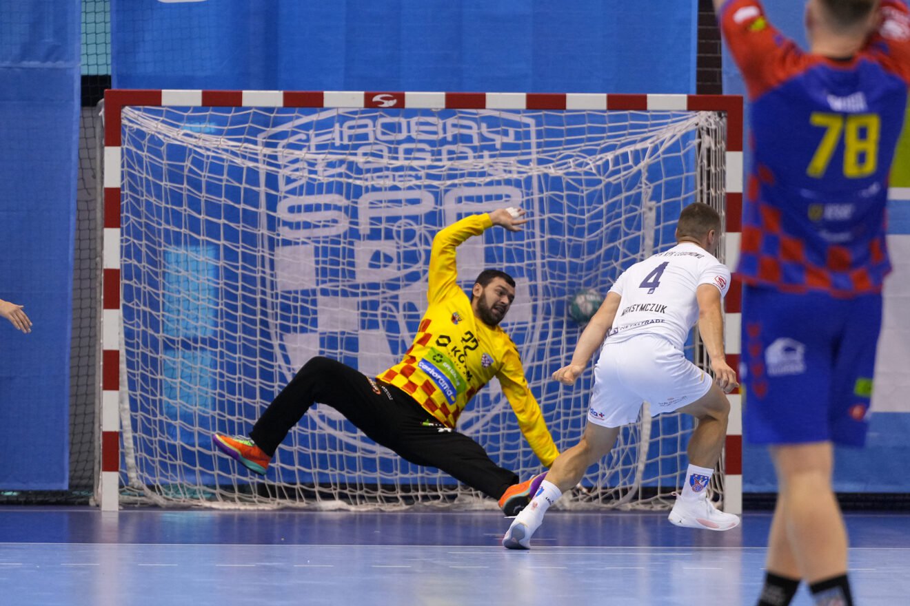 Chrobry rozpoczął mocną ofensywę – jednym z filarów napędowych w drużynie Vitalija Nata był Kacper Grabowski, który pierwszą połowę zakończył z pięcioma trafieniami. Ostatnim akcentem pierwszych trzydziestu minut było trafienie Jakuba Orpika z bezpośredniego rzutu wolnego już po końcowej syrenie. Do przerwy mieliśmy zatem wysokie prowadzenie KGHM Chrobrego Głogów 20:12.