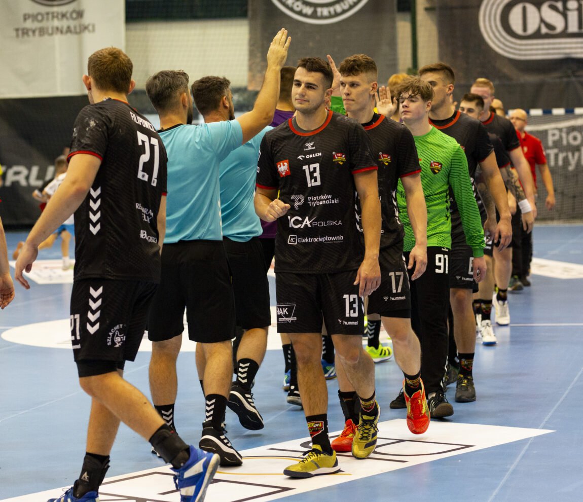 Dla obu drużyn punkty wywalczone w tym pojedynku były kluczowe w kontekście walki o utrzymanie, co było widać już po pierwszych minutach rywalizacji. Dużo walki w obronie i mało bramek, ale determinacji nie można było odmówić żadnej ze stron. W 10. minucie gospodarze prowadzili 4:3, mieli nawet szansę na dwubramkowe prowadzenie, ale rzutu karnego nie wykorzystał Mateusz Chabior. Kolejne minuty to fragment dobrej gry Piotrkowianina, który niejako ustawił pierwszą część meczu. W 20. minucie było już 5:10, a KPR na kolejną bramkę musiał czekać aż sześć minut. W końcówce pierwszej połowy gospodarzom udało się poprawić grę i zmniejszyć stratę do trzech bramek.