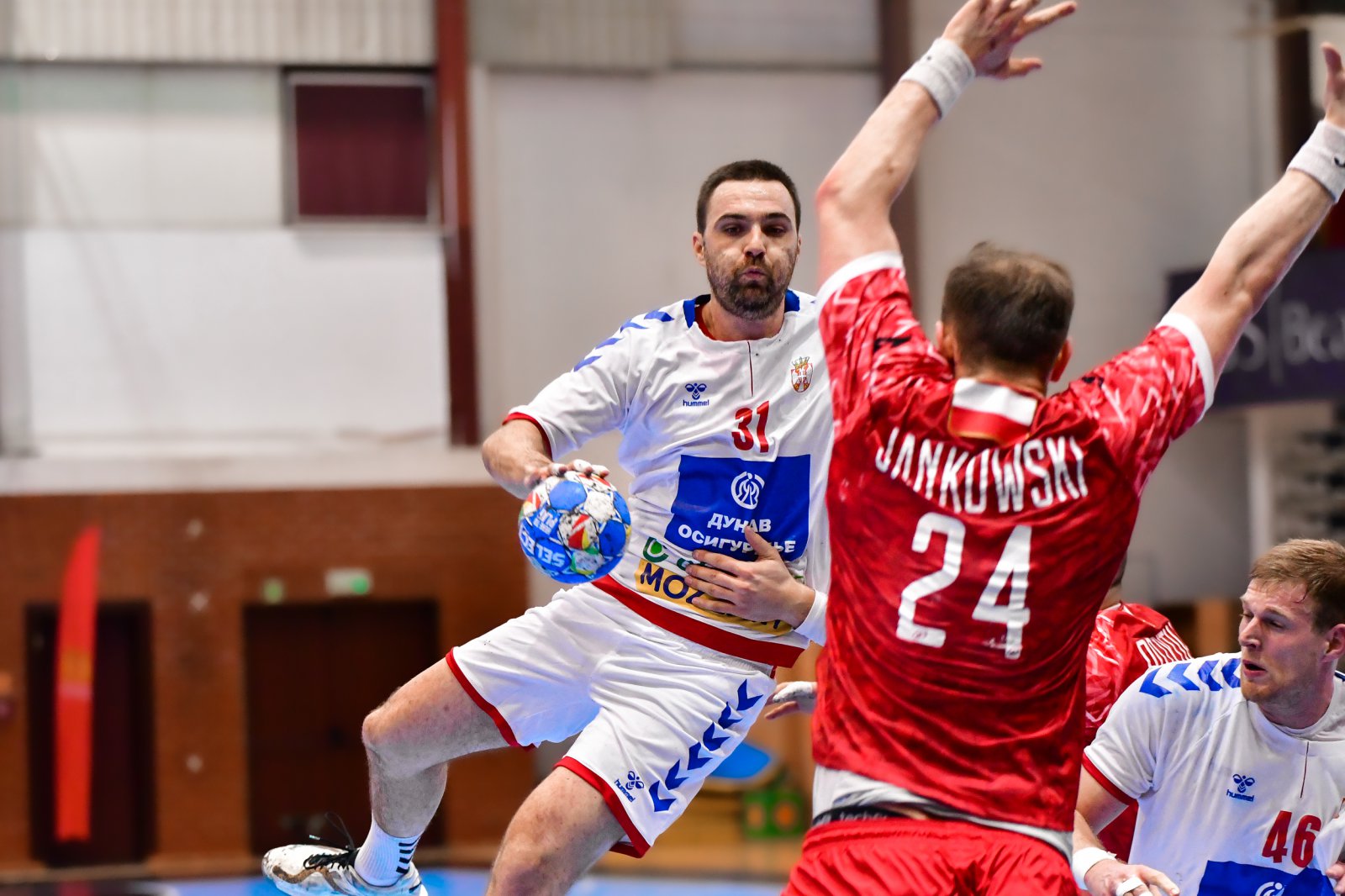 Oba spotkania z Serbią były zamknięte dla publiczności. W piatkowym starciu Polacy przegrali 25:26, z kolei w niedzielnę południe ulegli oni Serbom 28:36. Najskuteczniejszym zawodnikiem spotkania został Damian Przytuła, który rzucił siedem bramek, sześć trafień zanotował Kamil Syprzak.