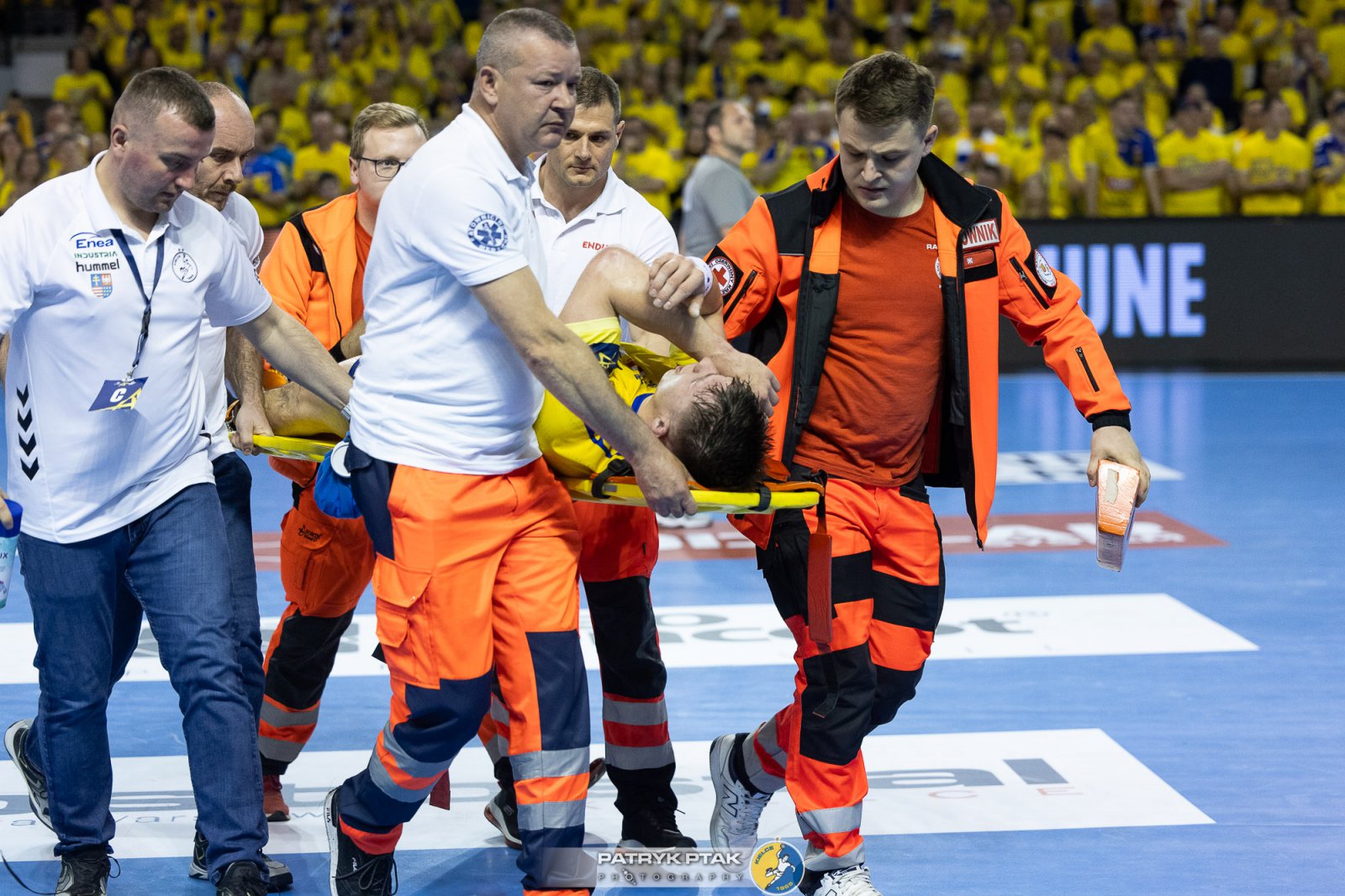 Pod koniec spotkania po rzucie na kielecką bramkę Felix Claar upadł na nogę Michała Olejniczaka. Rozgrywający złapał się za kolano, widać było, że mocno cierpi. Zaraz przy nim pojawił się sztab medyczny Industrii, ostatecznie Olejniczak na noszach opuścił parkiet. Cała sytuacja wyglądała fatalnie i można się było spodziewać poważnej kontuzji i długiej przerwy.