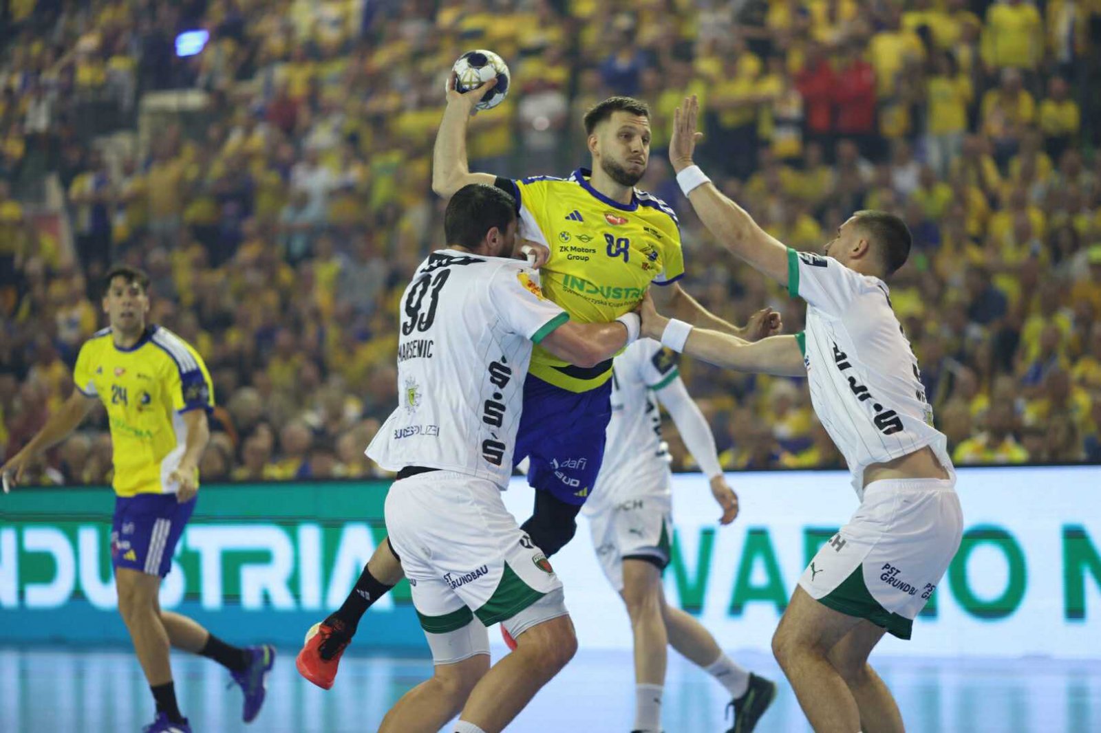 Po wznowieniu gry Industria spisywała się lepiej, w czterdziestej minucie udało się zmniejszyć straty do pięciu trafień. Kielczanie mogli nawet mocniej dopaść rywala, jednak rzuty Szymona Sićki i Hassana Kaddaha bez problemu obronił Dejan Milosavljev. Kolejne minuty, to bardziej wyrównana gra, ale w końcu na siedem minut przed końcem po golu Alexa Vlaha kielczanie przegrywali już tylko 28:31, a o czas poprosił wtedy Nicolej Krickau.