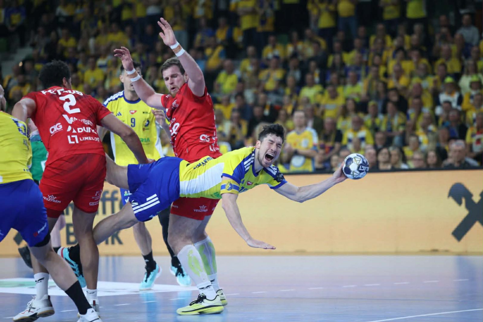 Jednak na trzy i pół minuty przed końcem po golu Szymona Sićki Industria wróciła na prowadzenie. Chwilę później Klemen Ferlin zatrzymał z karnego Hugo Descata. Kielczanie w kolejnej akcji stracil piłkę dość szybko. Węgrzy wyrównali. Kielczanie atakowali, na indywidualną akcję zdecydował się Aleks Vlah, sędziowie podyktowali karnego. Do piłki podzedł Piotr Jarosiewicz i trafił. Veszprem jeszcze oddało nieskuteczny rzut i z wygranej cieszyli się zawodnicy Industrii.