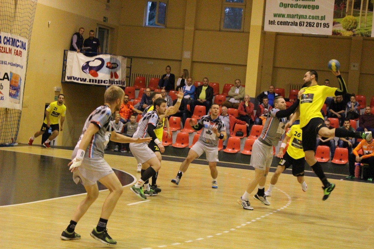 Już przed spotkaniem było wiadomo, że wągrowczan czeka bardzo trudny mecz na terenie nieobliczalnego beniaminka, który niemal przez całe spotkanie utrzymywał się na prowadzeniu. Bardzo dobrze między słupkami spisywał się golkiper gospodarzy, który zatrzymywał rzuty przyjezdnych, jak również rzuty karne. W 38. minucie akademicy prowadzili 21:18 i wyglądało na to, że zaczynają przejmować kontrolę nad tym pojedynkiem, jednak dwa trafienia Bartosza Świerada pozwoliły żółto-czarnym w 47. minucie po raz kolejny złapać kontakt z przeciwnikiem 22:23.