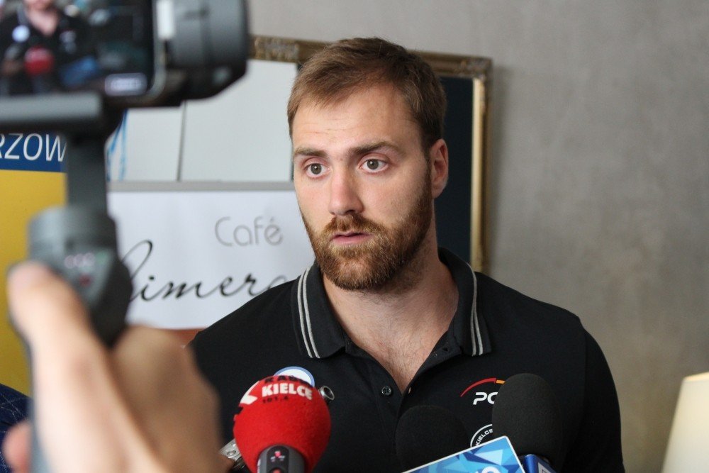 Nowy bramkarz PGE VIVE z dziennikarzami rozmawiał po angielsku, kiedy pierwszy wywiad po polsku? - Myślę, że za trzy do sześciu miesięcy - odpowiedział po angielsku. - Mówię trochę po polsku, ale szybko się uczę - dodał już w naszym języku.