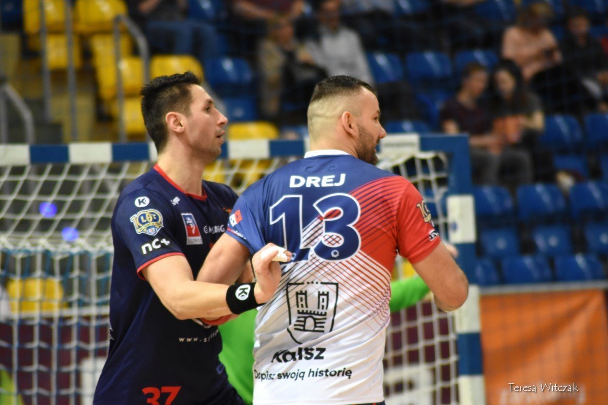 Rozmowa ze szkoleniowcem pomogła drużynie. W 20. minucie remis Dmytro Horiha (9:9). Mecz stał się zacięty i zawodnicy odpowiadali sobie kolejnymi trafieniami. Sandra SPA po mocniejszej grze w defensywie w 25. minucie wyszła na prowadzenie 13:11, ale w końcowych minutach pierwszej połowy kaliszanie odrobili różnicę i ostatecznie do szatni schodzili z minimalnym prowadzeniem 15:14.