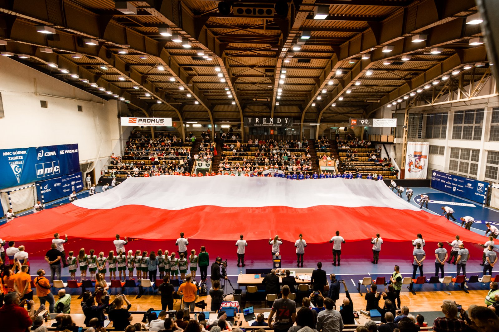 Ogromna biało-czerwona flaga zaprezentowana w PGNiG Superlidze