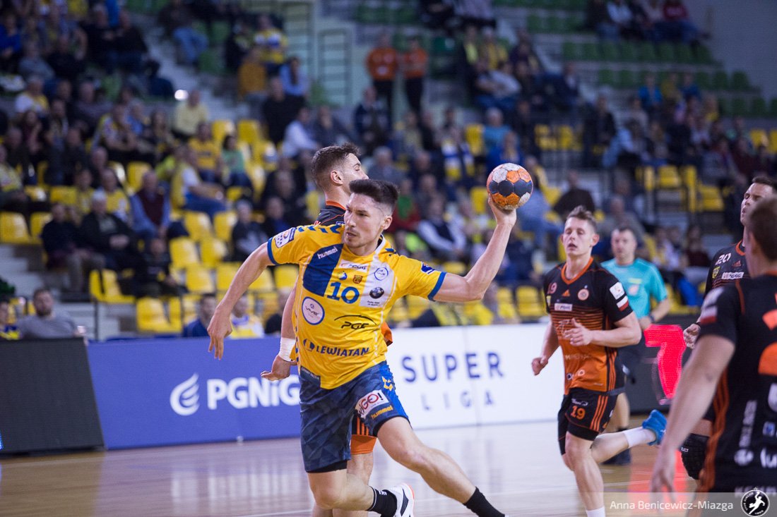 Drużyna miejscowych zaczęła popełniać coraz więcej błędów. Gracze nierzadko tracili piłkę. Nie potrafili także pokonać Mateusza Korneckiego, nawet z dogodnych pozycji. Łomża Vive Kielce utrzymywała kontrolę nad przebiegiem rywalizacji. Zawodnikiem, który uniemożliwiał kielczanom zbudowanie jeszcze więszej przewagi, był bramkarz Patryk Wiącek. Pomimo jego dobrych interwnecji zespoły schodziły na przerwę przy wyniku 23:18 na korzyść mistrzów Polski.